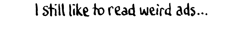 Image: A comic-book page full of ads for old novelty items. At the bottom of the page is one for 'X-Ray Spex'. Ad close-up: Kittens of the Sea: Turn these freeze-dried catfish eggs loose and just watch what happens! $1.00 to KITTENS, Box 27A. Ad close-up: I can kill with 3 fingers. It would be illegal and unethical for anyone to use or even learn these fighting technique. $1.00 to KILL, Box 7713. Ad close-up: X-Ray Spex. $1.00. Really works! Hilarious optical trick may reveal more than you bargained for! SPEX, Box 8173.