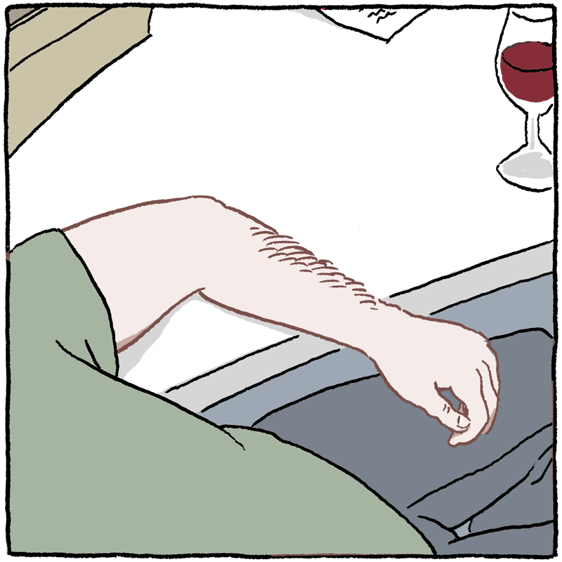 Image: silhouette of the boy's hand in front of a lamp. Brother says: 'It's like if you hold your hand up to the light, and like unfocus your eyes. Same thing.'